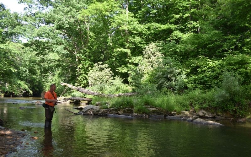 尝试在 Crooked Creek WMA 的收费钓鱼区钓夏季鳟鱼