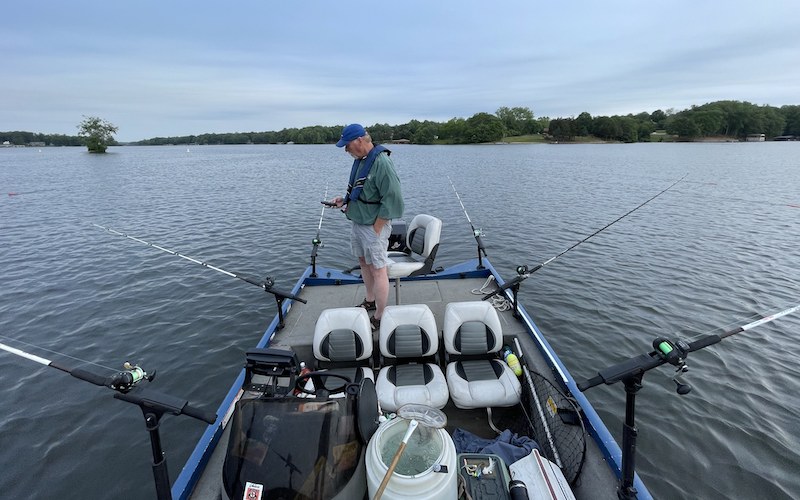 在弗吉尼亚州小溪水库钓夏季梭鲈和黄鲈