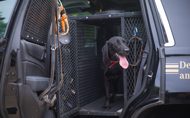 野生动物资源部 K 9保护警察的狗在乘坐 K 9车辆时可以保持安全和凉爽。阅读更多…