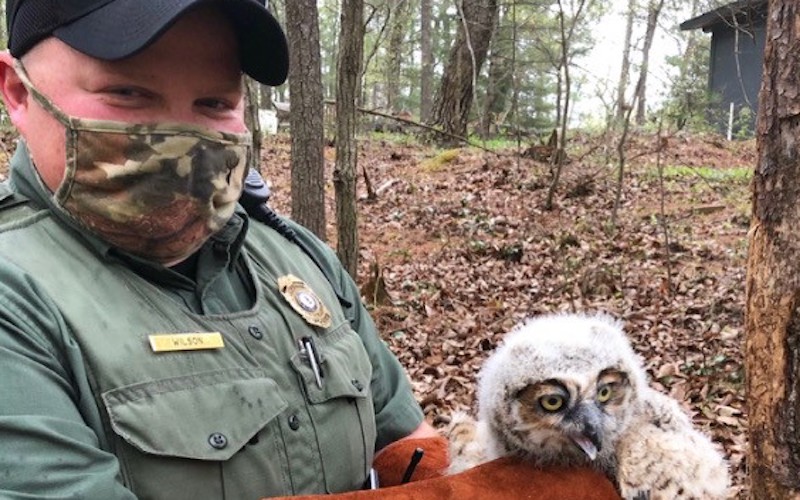 四月份,DWR 自然保护警察的警官 Shane Wilson 在罗阿诺克协助尝试重新为一只幼年大角猫头鹰筑巢。阅读更多…