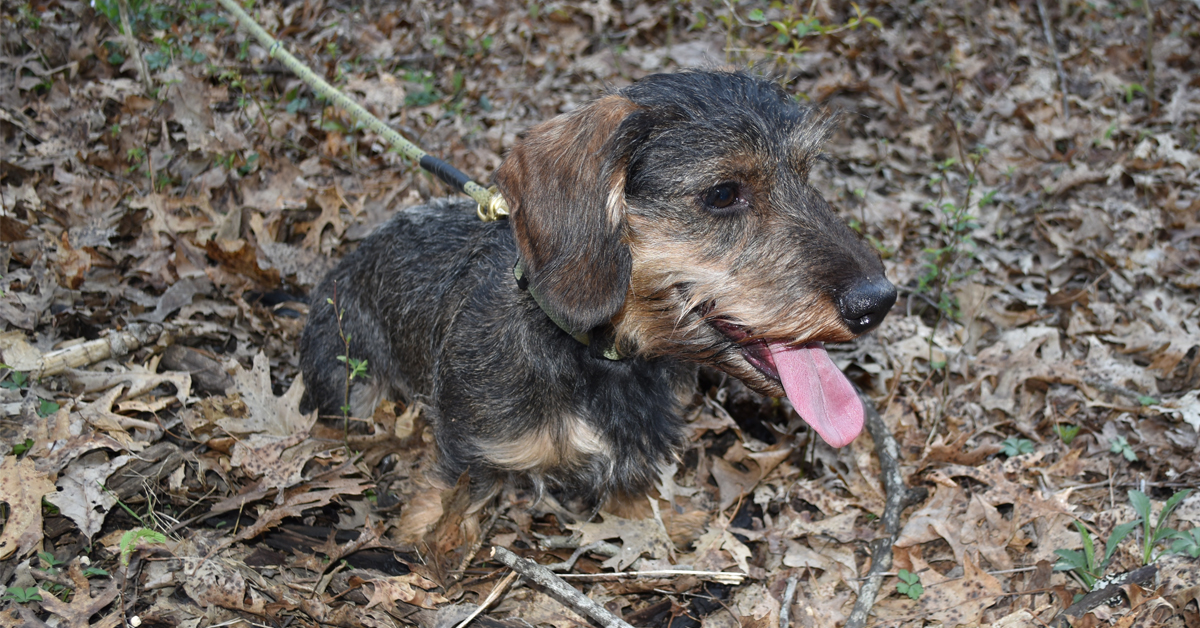 自2011以来,弗吉尼亚州已允许使用拴着的追踪犬来追捕鹿、熊和火鸡,据史密斯称,这项服务对猎人来说是双赢的。“这一切都是为了不把它们留在森林里,”他说。任何狗都可以训练追踪猎物,但史密斯认为德国刚毛腊肠犬尤其擅长,因为它们渴望取悦猎物,嗅觉灵敏,而且体型小巧(平均重18磅左右),这使得它们很容易用皮带牵着控制,并且擅长在茂密的灌木丛中穿行。