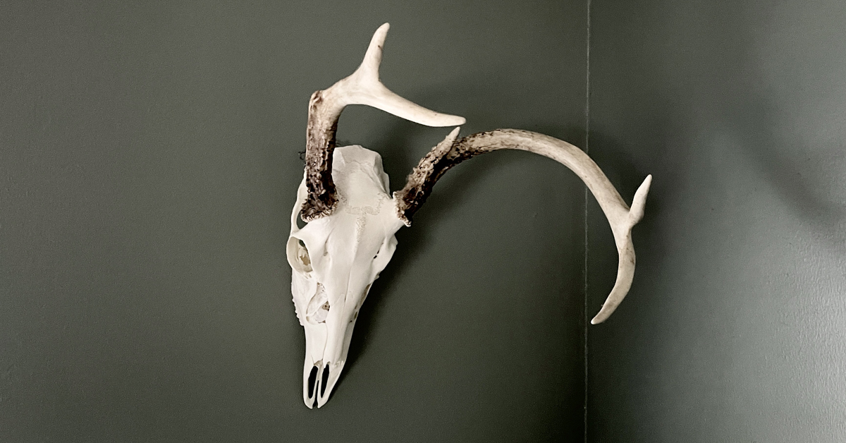 如果您追求传统欧式卡纸的纯白色,您需要花时间 "漂白 "头骨,使其达到合适的颜色。通过研究我了解到,漂白鹿头骨的第一步是绝对不能使用漂白剂。大多数人建议用 Oxiclean 在室外加热一个大锅,然后将头骨浸入其中。确保顶部留有几英寸的水,以便清洁剂发挥作用,将头骨上的污垢向上拉出。
