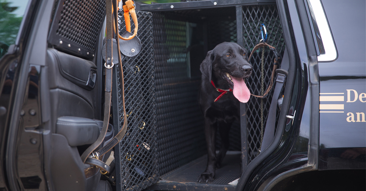 每辆 K 9车辆(通常是 SUV 或四门卡车)都有一个特殊的金属狗窝,后座区域安装有橡胶地板。当车辆行驶时,K 9会待在犬舍内,除非训犬员将它们带出去,否则它们会一直待在犬舍内。“他们有一扇窗户,狗可以把头伸出车前,还有一扇内门。有了内笼门,我们就可以打开后车门,让它们呼吸新鲜空气,而不必担心它们跳出车外,”负责 K 9 Bailey 的 CPO James Patrillo 说道。