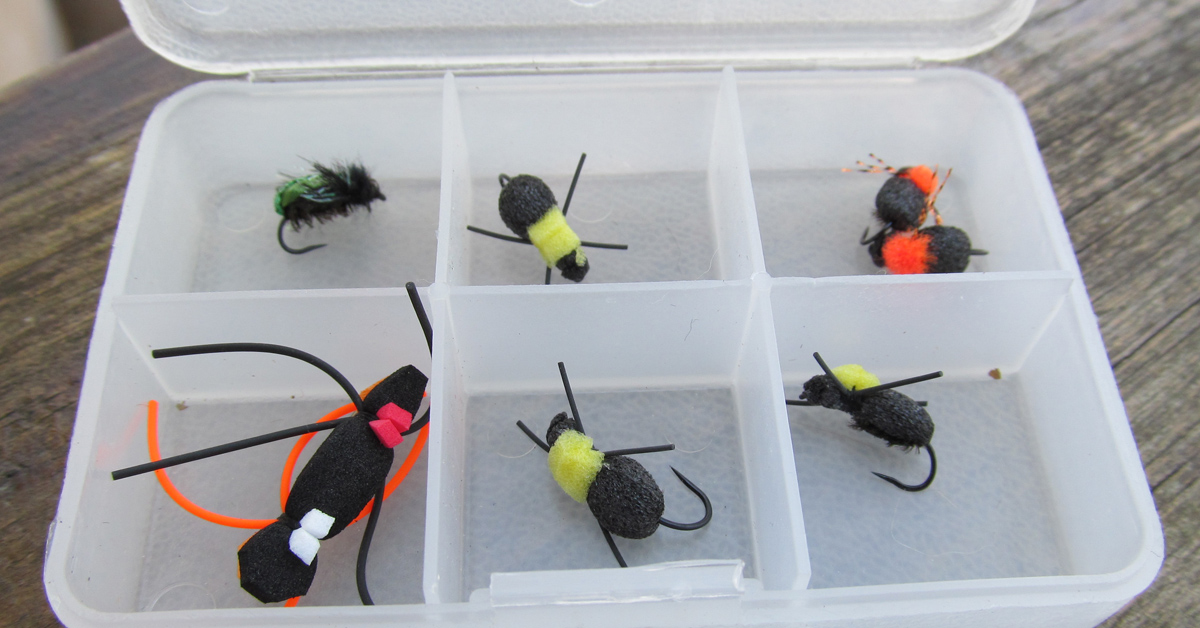 邮购公司提供各种各样的甲虫蝇,但您也可以轻松地自己绑扎。大多数图案的构造都非常简单。黑色是最好的颜色。