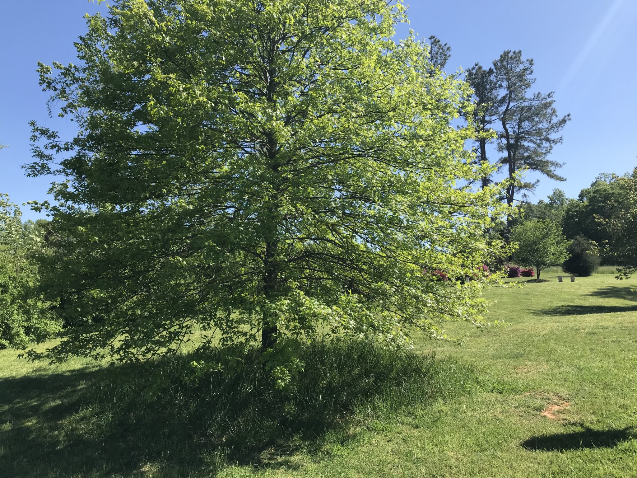 这张我拍摄的橡树照片展示了我如何避免这样做,现在每年都会在树下长出一片覆盖物。我很少割草,割草时不会撞到树枝,并且很欣赏经常在这棵树下避难的动物,包括一年中会在这里待上几天的小鹿。我在我的几棵果树周围做过同样的事情,并且不止一次地看到树下有小兔子。冬天的时候,我会在这些树下撒一些鸟食,让鸟儿们在树下觅食。