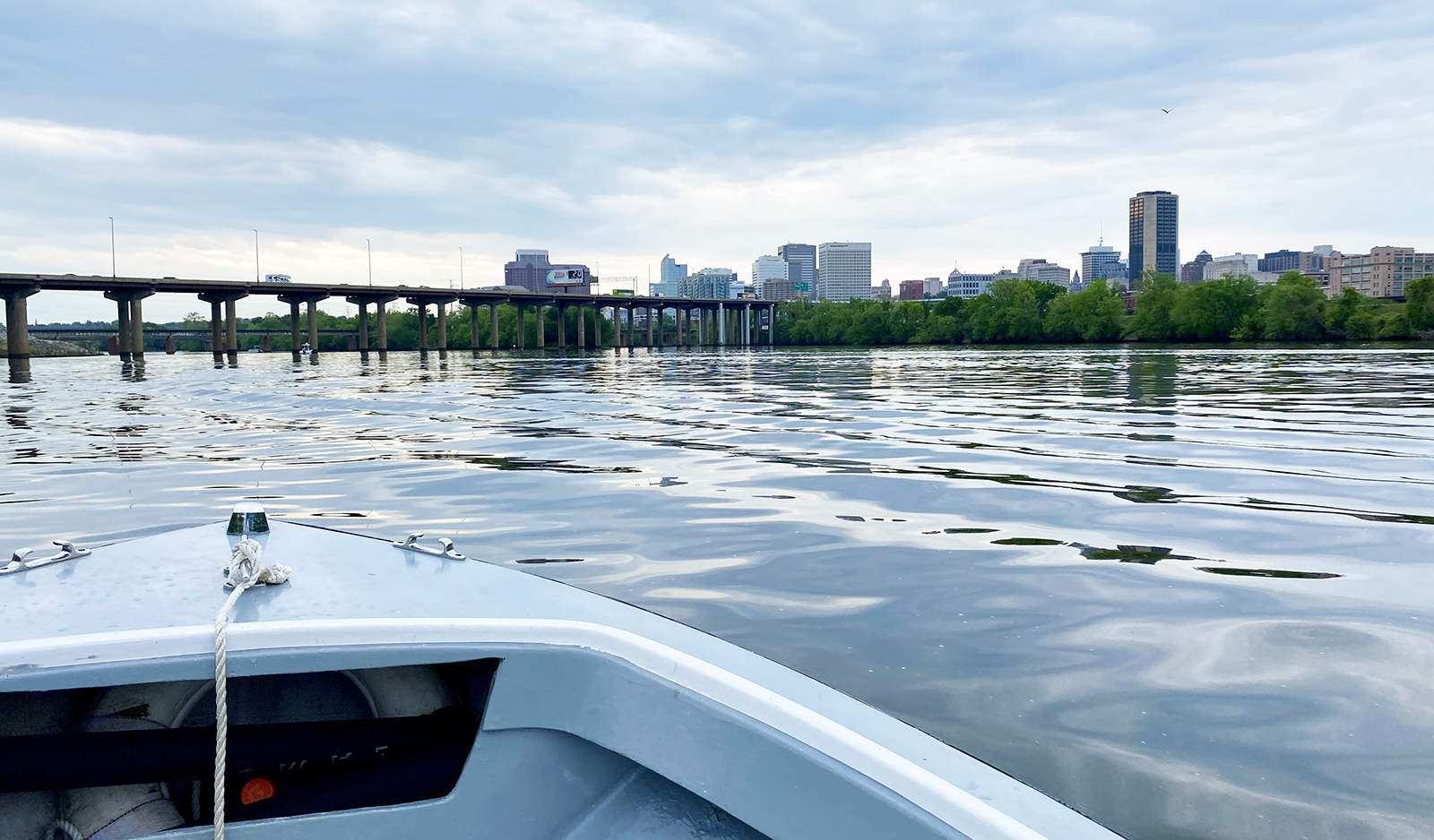 四月中旬一个温和但阴沉的春日,中午时分,我和里德在詹姆斯河上游潮汐河畔的罗克茨码头见面,这里距离州际公路、I- 95和里士满市中心不远。我以为在到达第一个地点之前,我们会乘坐 Reid 的小艇进行一段航程。嗯嗯。我们离开码头并立即开始准备钓鱼。我甚至不用眯眼就能看到里士满的天际线。