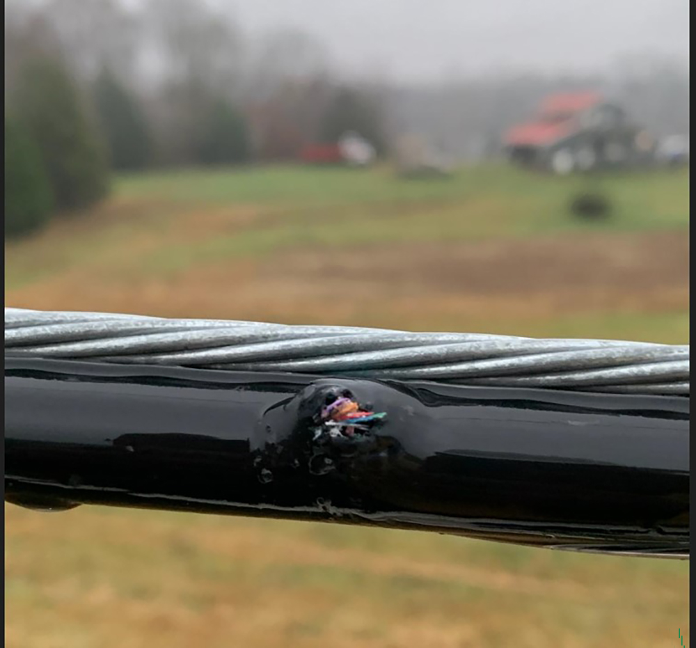光纤电缆是电线杆上新增加的设备,它紧邻电线并在电线下方运行。光纤电缆可为您和您的邻居提供高速网络。光纤由玻璃管保护,一旦被击中,玻璃管就会碎裂,从而中断邻居的互联网和电话服务。