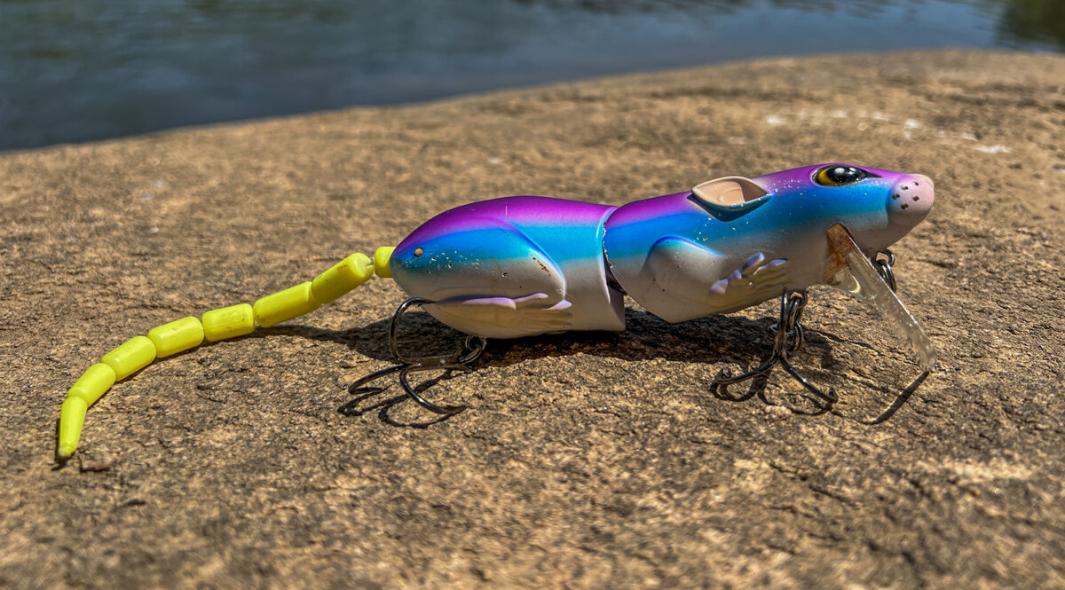 我记录中的第三个诱饵是我大约两年前发现的——一只老鼠。这些是大型诱饵,游动较浅,但会产生很大的尾流。我喜欢在8 ′ 重型石墨复合诱饵抛投竿上使用20磅共聚物线。我抛出重型共聚物,因为它具有抗冲击强度——老鼠并不便宜,而且用编织线,你可以在抛竿时把诱饵折断。我把这个诱饵扔到和扔爬行器相同的位置,用相同的方式钓鱼 - 让它撞击水面,数到五,然后慢慢地卷起它。