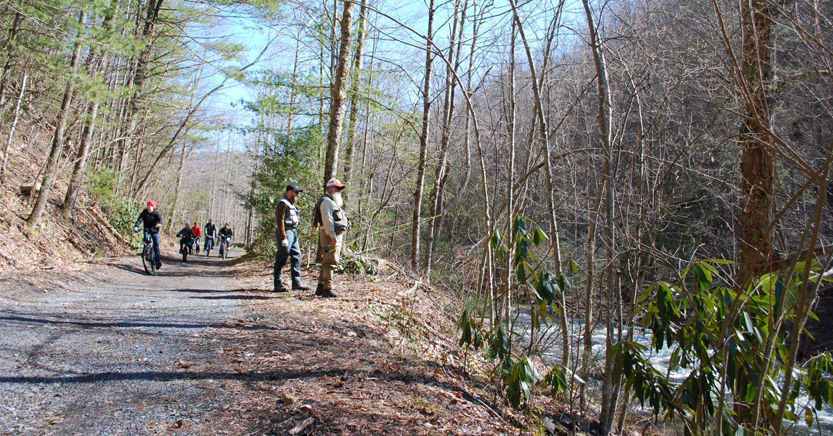 从大马士革到北卡罗来纳州边界附近的 Creeper 和 VBWT 区段拥有绝佳的高地观鸟体验,并且还穿过罗杰斯山国家休闲区。我在这一带听到的鸣叫包括烤炉鸟、美洲红尾鸲和黄莺。摩根表示,这一段以及整条小道上可能还出现过其他爬山雀莺类,包括黄腰莺、栗胁莺、虫食莺、普通黄喉莺、黄胸鵙莺、黑颈莺、加拿大莺、肯塔基莺以及黑喉绿莺和蓝莺。他补充说,在这条小道上曾发现过金翅莺,这种鸟在许多地方的数量都在减少,而且在一些过渡地区也可能出现。摩根说,如果你在冬天来这里,在海拔较高的地方可能会看到金雕。
