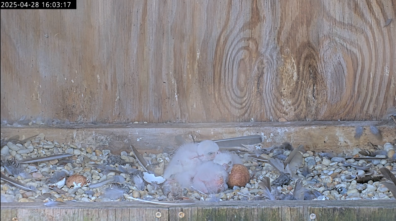 第一只小鸟孵化至今已有大约五天,因此我们预计剩下的蛋不会孵化。平均而言,一窝四枚蛋通常会在一到两天内孵化。虽然在游隼巢中观察到孵化需要长达八天的时间,但这是一种极其罕见的现象,因此最后的蛋不太可能孵化。不孕不育、天气和污染物等多种因素都可能导致这枚卵子“变质”。未孵化的游隼蛋通常会留在巢中或在雏鸟抚养过程中出现裂缝和破碎。如果未孵化的卵在大约三到四周后进行环志时仍然完好无损,则会将其收集起来并进行污染物检测。