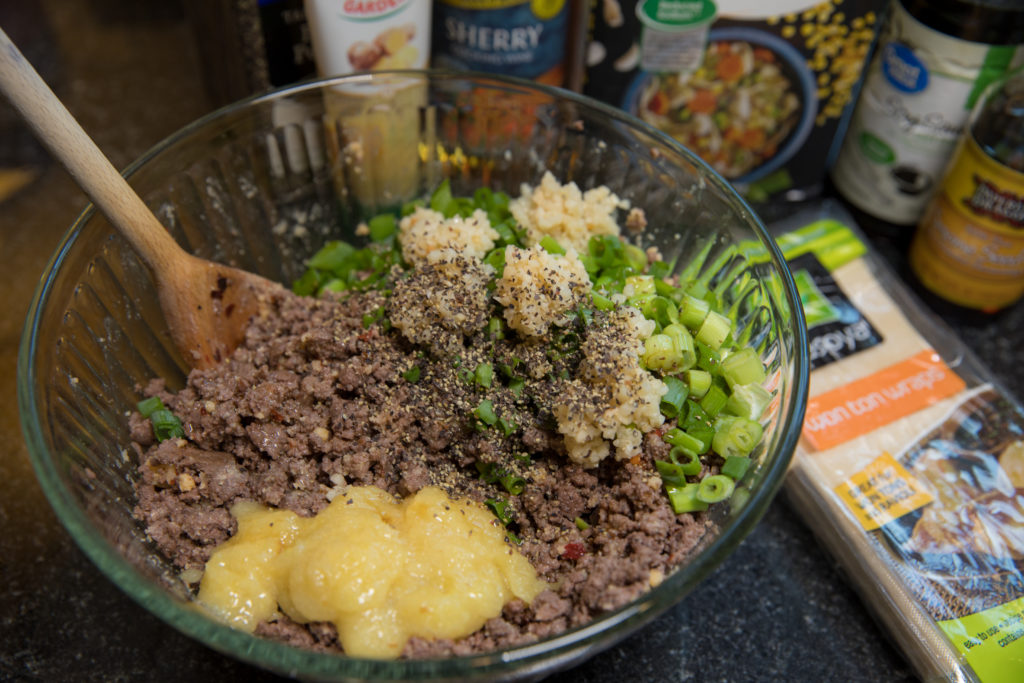 如果您想品尝亚洲美食,这是一道很棒的菜肴。鹿肉汉堡的香料味道恰到好处,里面塞满了炸馄饨,还浸上了咸味的姜汁酱油,您至少要尝试一次这个食谱。听起来准备起来很难,但其实很简单。最难的部分是将馄饨折叠起来并煎炸,不要弄破它们,但不要塞得太满,这样它们才能完美地粘在一起。