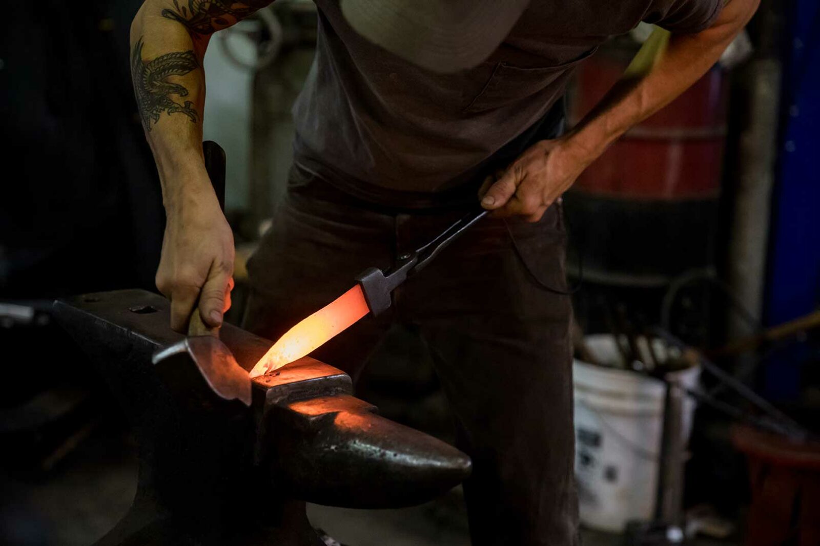 “我们所有的刀具和刀鞘都是在里士满采用最优质的材料制造的。我们在内部进行所有热处理,并生产我们自己的特种大马士革钢。”