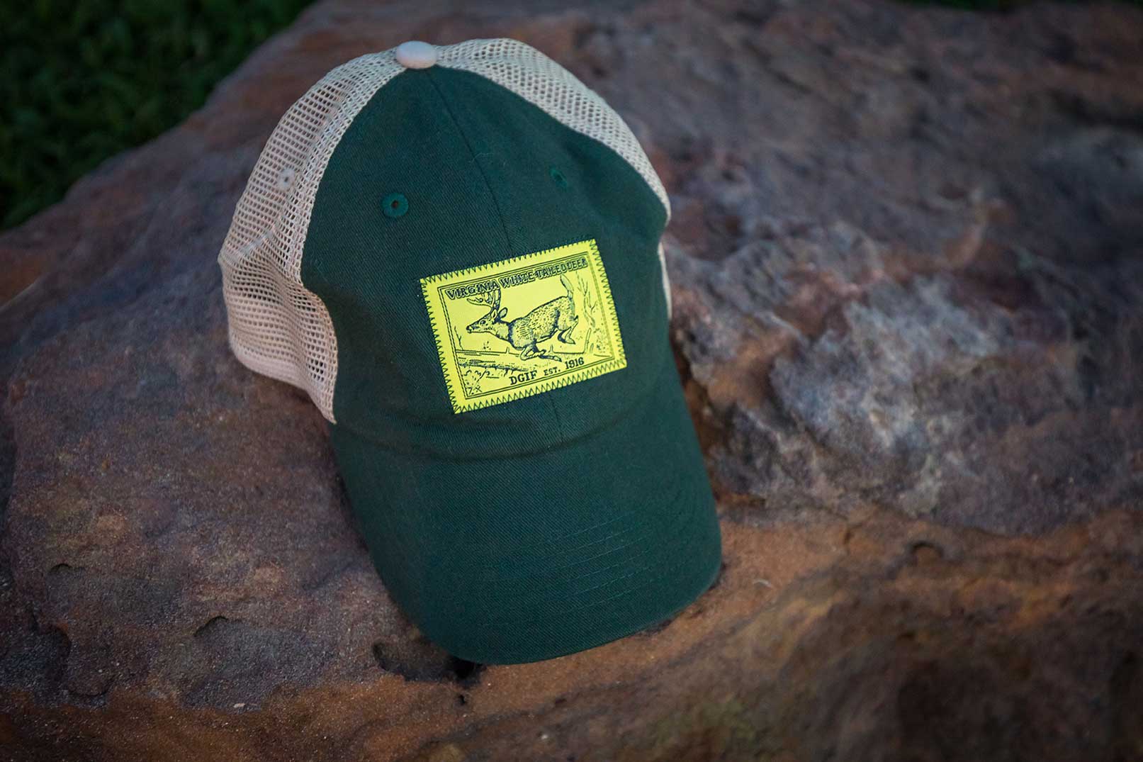 这顶帽子上印有复古的1944弗吉尼亚白尾鹿印章。原始邮票设计体现了几十年前和今天野生动物保护的必要性。