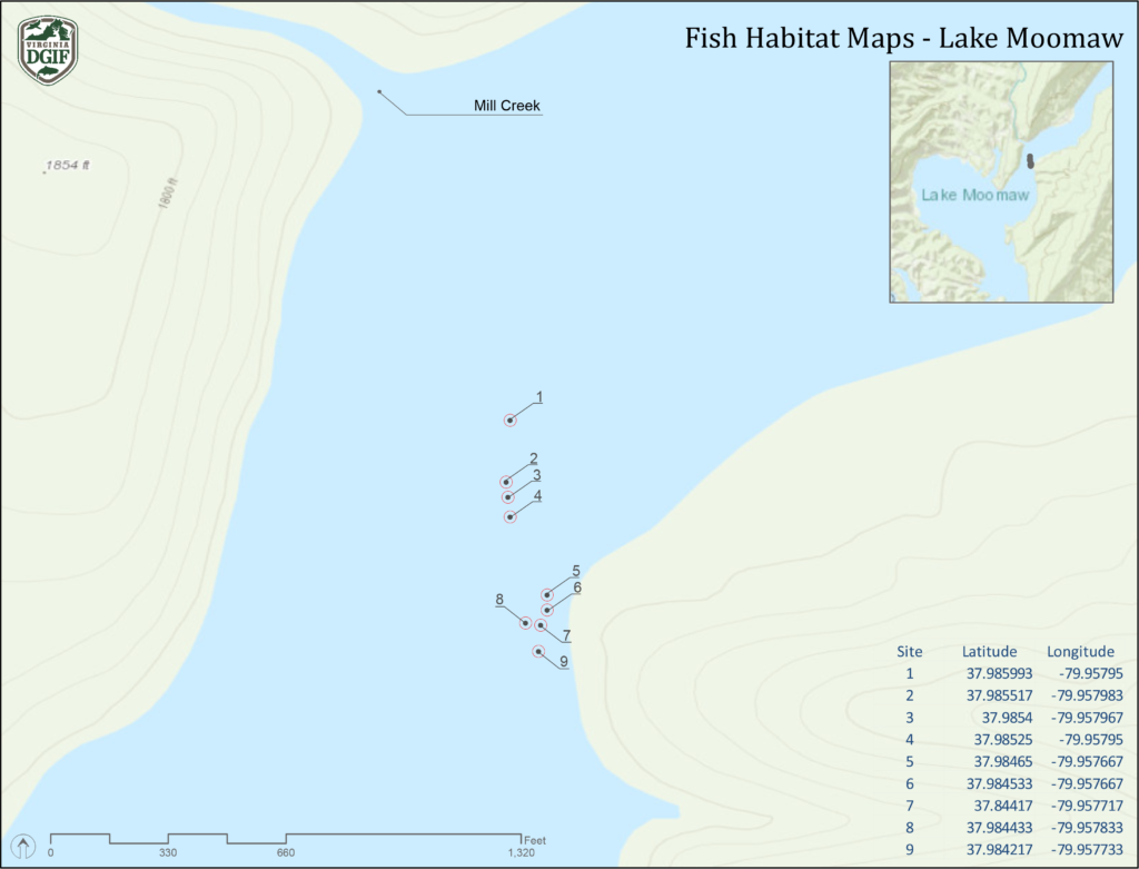 Moomaw湖鱼类栖息地地图