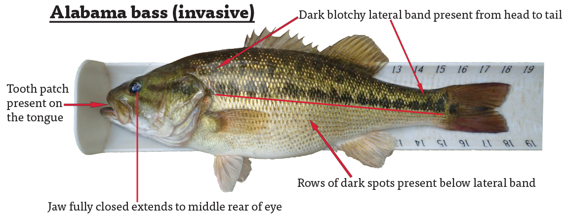 怀疑自己捕获了阿拉巴马鲈鱼的垂钓者应该给鱼拍照,剪下拇指大小的腹鳍,并将鱼鳍夹干燥地存放在信封中。腹鳍位于鱼的底部,就在头部下方。然后,他们可以通过fisheries@dwr.virginia.gov联系 DWR或位于804-367-1293 。