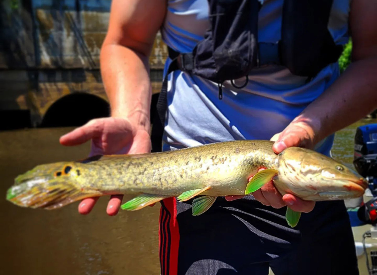 在电捕鱼调查期间对弓鳍鱼进行处理。©照片由 Scott Herrmann 拍摄