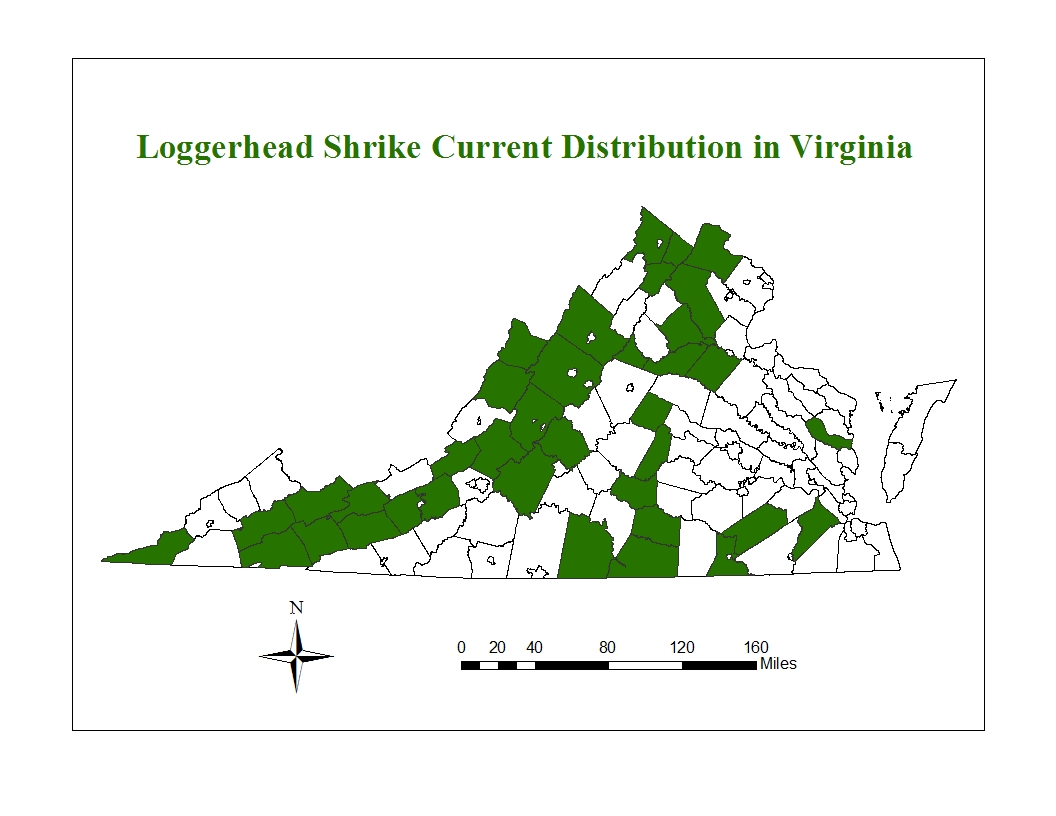 我们对弗吉尼亚州伯劳基本繁殖和越冬生态的了解,很大程度上得益于美国野生动物资源部 (DWR) 在1980年代资助弗吉尼亚理工大学进行的两项研究。这些项目主要集中在奥古斯塔、罗金厄姆和谢南多厄县的谢南多厄河谷。DWR 通过弗吉尼亚理工大学在1996和1997资助了后续调查:在1980年代记录过繁殖的近50地点中,只有一个地点仍然有人居住。调查覆盖了沿海平原、山麓和山谷地区的51县,记录了其中12县的伯劳鸟。