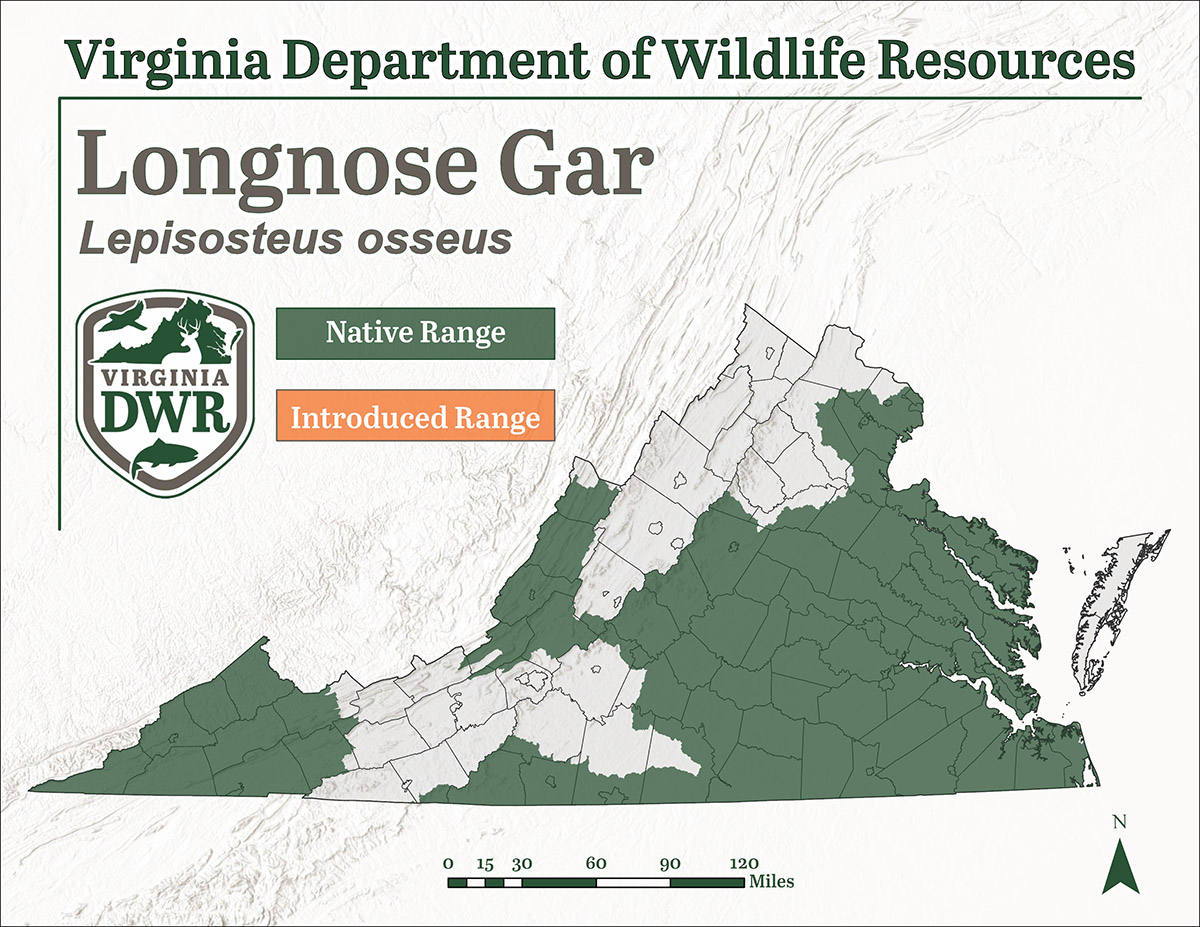 尺寸:弗吉尼亚州的长鼻雀鳝长度可超过50英寸