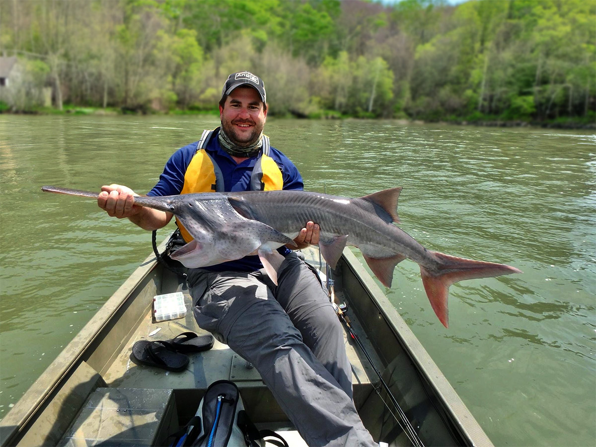 田纳西州的一名垂钓者偶然捕获了一条匙吻鲟,目前在田纳西州垂钓匙吻鲟是合法的。摄影: © Zach Adkins
