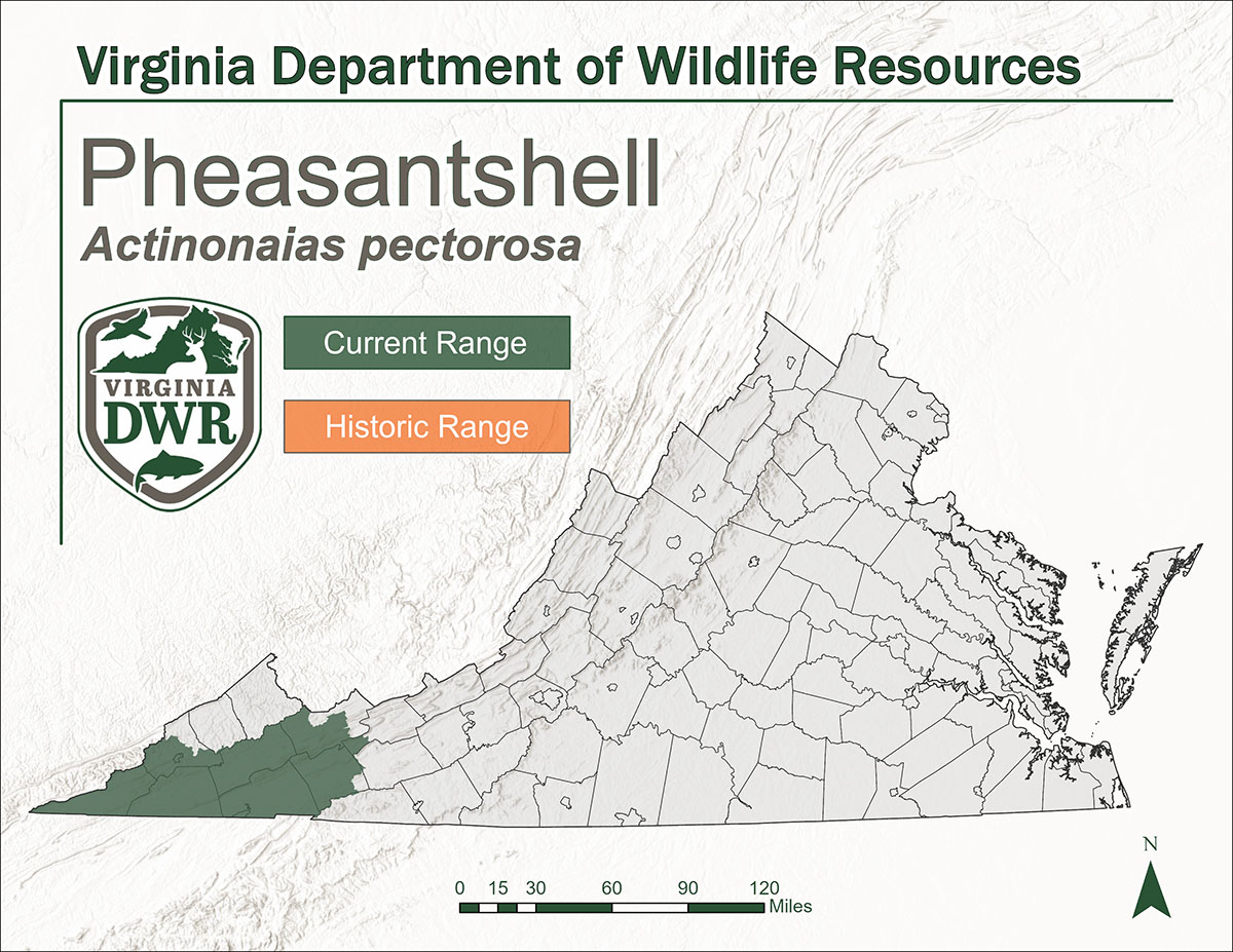 自2016首次报道出现淡水贻贝大规模死亡以来,克林奇河田纳西河段的鳖种群数量急剧下降。每年都会发生这种大面积死亡事件,而 Pheasantshell 受到的影响尤为严重,据估计,田纳西州浅滩的 Pheasantshell 数量损失高达90 %。然而,弗吉尼亚州的雉鸡壳种群数量仍然很大,因为该州只有克林奇河的最下游受到影响。