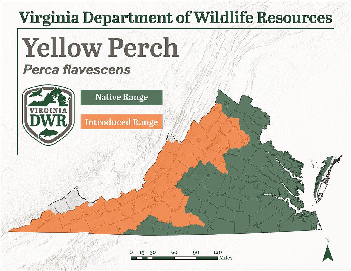 尺寸:弗吉尼亚州的黄鲈鱼平均长度为6到8英寸,但有些品种的长度可超过15英寸。